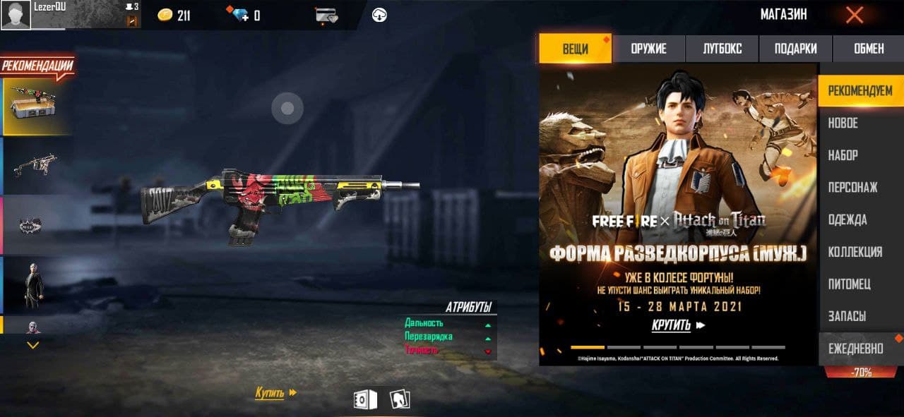 Но это было только начало. Создатели активно принялись и за другие коллаборации: прямо сейчас в игре проходит ивент, посвященный аниме “Атака Титанов”. Все ящики с лутом стилизованы под дизайн “Разведкорпуса”, а в магазине можно приобрести соответствующий скин. К тому же стартовый экран украшает Эрен, наносящий удар бронированному титану Райнеру — как после такого не зайти и не скатать парочку партеек? Явно в будущем нас ждет еще больше интересных событий.