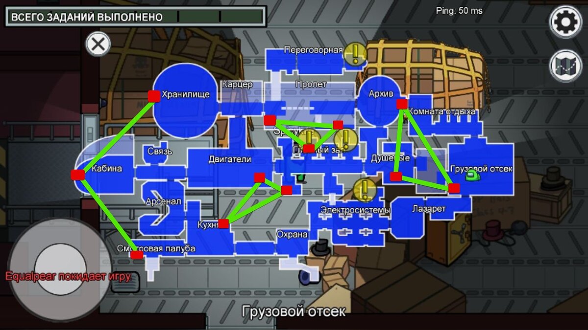Для импостеров и мирных игроков план корабля выглядит схожим образом. Саботажи уже известны геймерам по старым картам.
