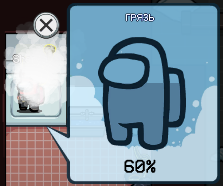В главном зале есть душевая, в которой доступно задание защитить себя от грязи.