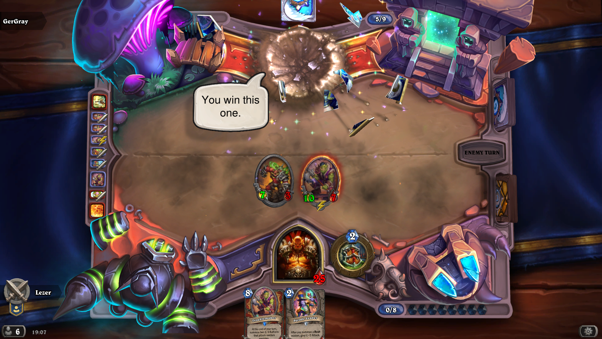 Процесс матча проходит так: ты находишь своего оппонента, списываешься с ним в личных сообщениях и уточняешь Battletag, чтобы связаться уже в игре. Далее вы пишите друг другу три своих класса, баните по одному из них, ну и начинаете дуэль. Побеждает тот, кто сможет одолеть оппонента двумя своими колодами.