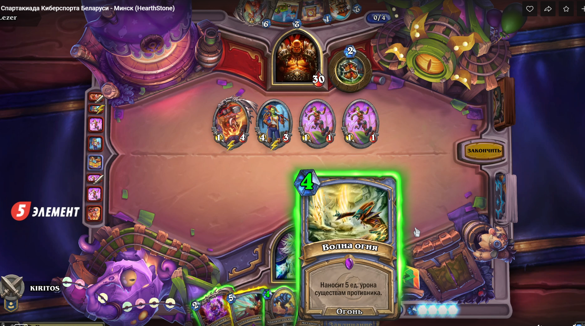 К слову, мне удалось пройти аж в 1/4! К сожалению, в Hearthstone есть значимый элемент случайности, который обойти не получилось, и игрок под ником KIRITOS меня выбил. Ну ничего, пожелал оппоненту удачи на турнире и пошел смотреть стрим Спартакиады. К слову, мой матч транслировался, поэтому можно было даже в записи посмотреть на руку противника и на свои ошибки. Главное — не подгореть…