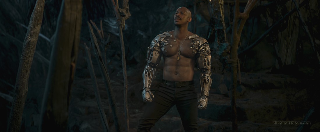 Сценаристы решили не слишком рисковать. Единственное, что можно назвать смелыми решениями “на грани”, — это главный герой, ранее не появлявшийся во вселенной “Мортал Комбат”, и отсутствие народного любимца Джонни Кейджа. Впрочем, оба пункта реализованы грамотно и не вызывают ненависти. Протагонист Коул Янг отличный аватар для зрителя. Глазами этого бойца смешанных единоборств мы познаем мир. Коул единственный, кто вообще не понимает, о какой Смертельной битве идет речь и почему это странные монстры и колдуны бродят по нашей планете. Вместе с ним ответы на вполне закономерно появляющиеся вопросы получает и зритель. Что до Кейджа, то его нишу занял Кано. Всю юморную часть повесили на этого бандюгана. И шутки не разочаровывают. Уровень жестокости и дерзости зашкаливает, а темы ниже пояса затрагиваются буквально в каждой реплике Кано.
