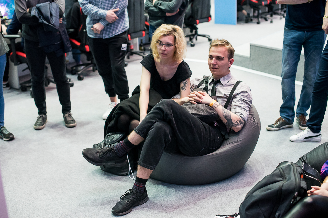 Конечно же, самый простой и захватывающий способ познакомиться с чем-то действительно близко — это поучаствовать. Интерактивность на киберспортивной площадке была максимальной. Можно было самому хоть на время стать мастером мышки и клавиатуры. Турниры проводились по огромному количеству игр: от классических Dota 2, CS:GO и FIFA до довольно молодых мобильных дисциплин. Именно в одной из телефонных игр я и решила попробовать свои силы. Ну а что? Эта тема сейчас набирает популярность. Нужно вливаться. Вот только в Brawl Stars — дисциплине, выбранной мной, для выступления на турнире нужен был напарник. А друга с нужными скиллами у меня под рукой не оказалось. На помощь пришли организаторы. Они дали возможность всем желающим и нуждающимся найти сокомандников прямо на месте. Конечно, шансы на победу это уменьшало, зато давало возможность познакомиться с интересными ребятами.