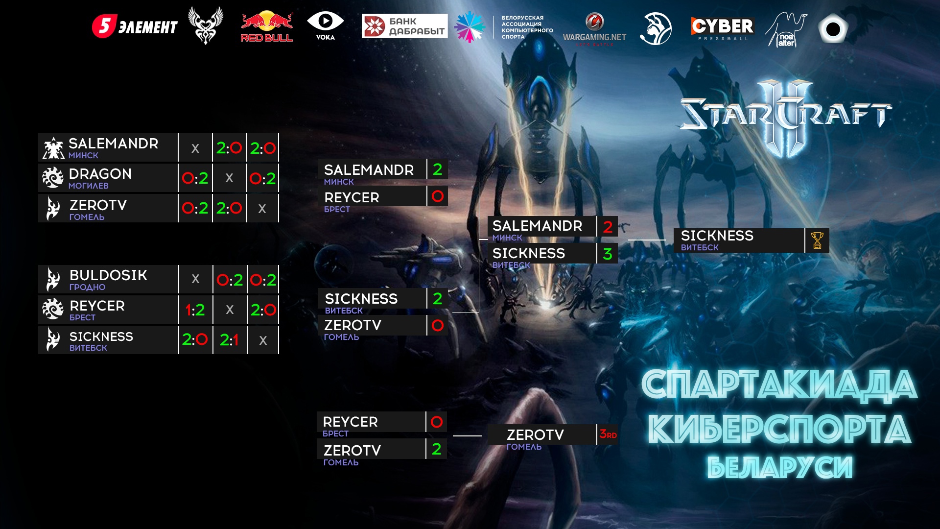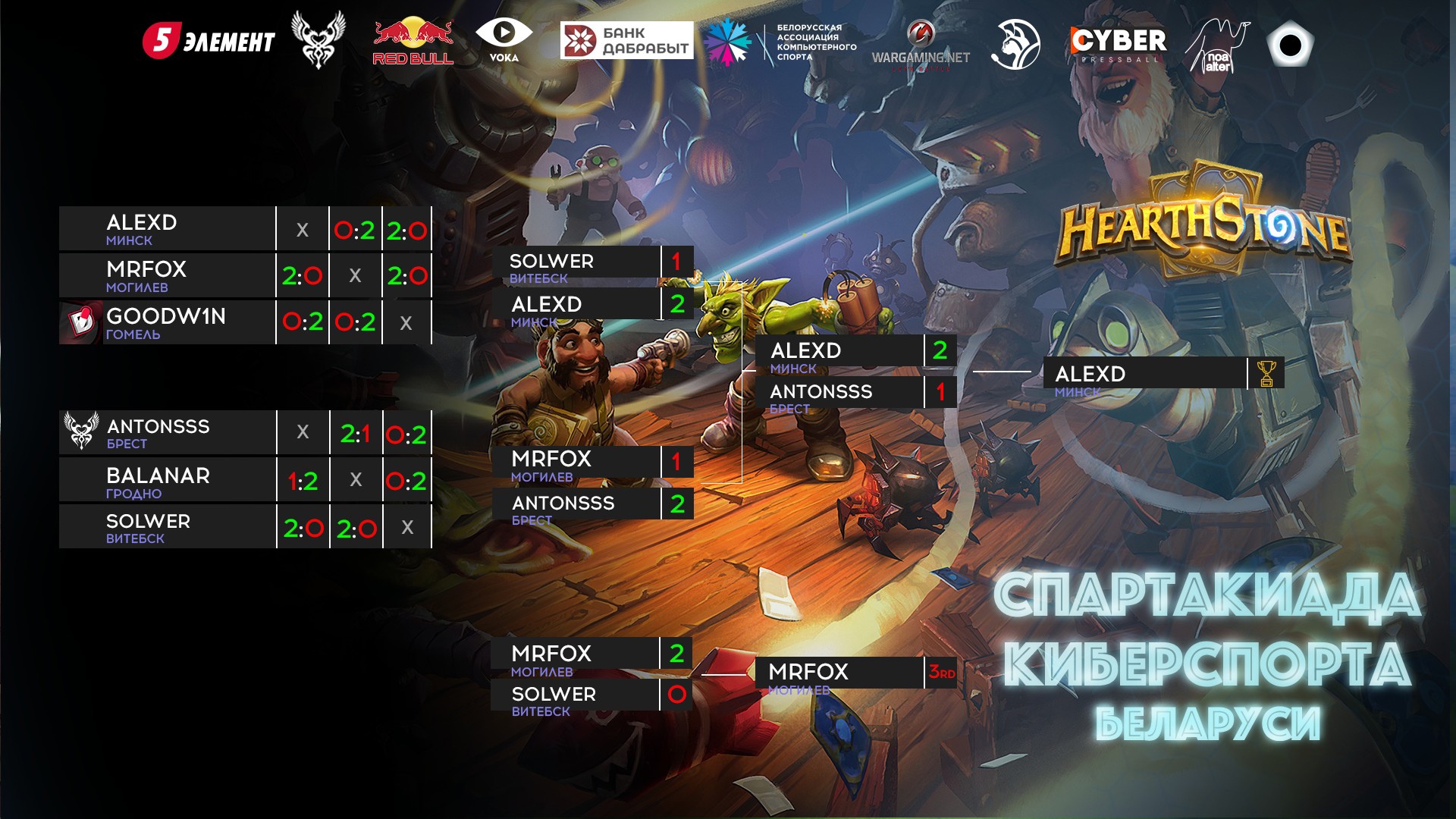 В заключительном матче Михаил переиграл Александра SaLemandr Лепешинского из Минска со счетом 3:2. Третье место же досталось представителю Гомельщины Антону ZEROTV Васильеву.
