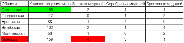Для наших читателей мы сделали сводную таблицу всех участников и наград Спартакиады. Хоть Минск и уступил по общему количеству игроков, но все же вышел на первое место по медалям!