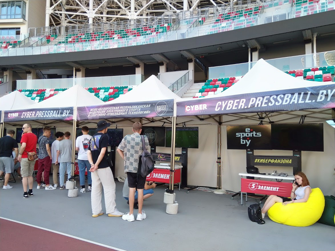 В воскресенье, 11 июля, завершился чемпионат Европы по футболу. В честь этого события минский стадион “Динамо” на целый месяц превратился в гигантскую фан-зону, где можно было комфортно посмотреть матчи лучших сборных континента. Нашлось там место и киберспорту. Наш портал вместе с BRFEST и esportsby организовал игровую зону с консолями. Любой желающий мог попробовать свои силы в виртуальном футболе. А в день самого главного матча – финала между сборными Италии и Англии — при поддержке сети магазинов “5 элемент” и букмекерской компании Parimatch прошел турнир по FIFA 21. О нем и расскажем в этом материале.