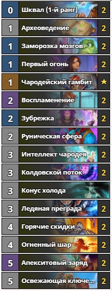 Самым имбалансным классовым квестом стал “Чародейский Гамбит” мага. Даже нерф “Колдовского потока” не смог окончательно выбить эту колоду из топа ладдера. В новой сборке избавились от небольшого перекоса в сторону заклинаний огня. Вместо “Возгорания” добавлен один “Конус холода”, что позволяет быстрее сделать все стадии задания и получить заветный бонус к силе заклинаний на более ранней стадии игры. В целом колода не очень дорогая — всего 4400 пыли. Однако, геймплей довольно специфический и подойдет далеко не каждому. Благо, стримеров, играющих на колоде подобного архетипа хватает.