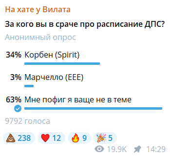 Конечно же, не мог остаться в стороне популярный киберспортивный комментатор и сооснователь студии Maincast Витайлий v1lat Волочай. Однако в этом случае он не стал высказываться и принимать чью-то сторону. Ограничившись лишь опросом в своем Telegram-канале, Виталий отразил мнение комьюнити о конфликте.