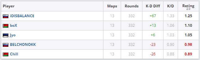 Новички Nemiga по статистике занимают пока две последние строчки. Но стоит отдать должное BELCHONOKK — рифлер не проиграл ни одного клатча. В активе россиянина шесть побед из шести возможных.