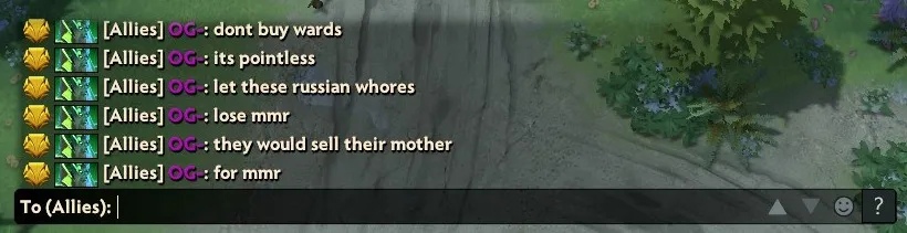 “Good luck”, “good game” — эти фразы нередко можно встретить в любых матчах по Dota 2. И профессиональных, и самых обычных пабах. Такие реплики — способ проявить уважении к противнику. Как бы игрок не был зол или переполнен другими эмоциями, но уже знакомое всем “gg” отправить в чат — это правило хорошего тона. К сожалению в чате таких правил придерживаются не всегда. И если резкие и неприятные высказывания обычных дотеров тут же забываются, то оскорбительные фразы профессионалов вызывают немало обсуждений в комьюнити. В этом материале мы предлагаем вспомнить случаи, когда киберспортсмены перегибали палку и провоцировали настоявшие скандалы.