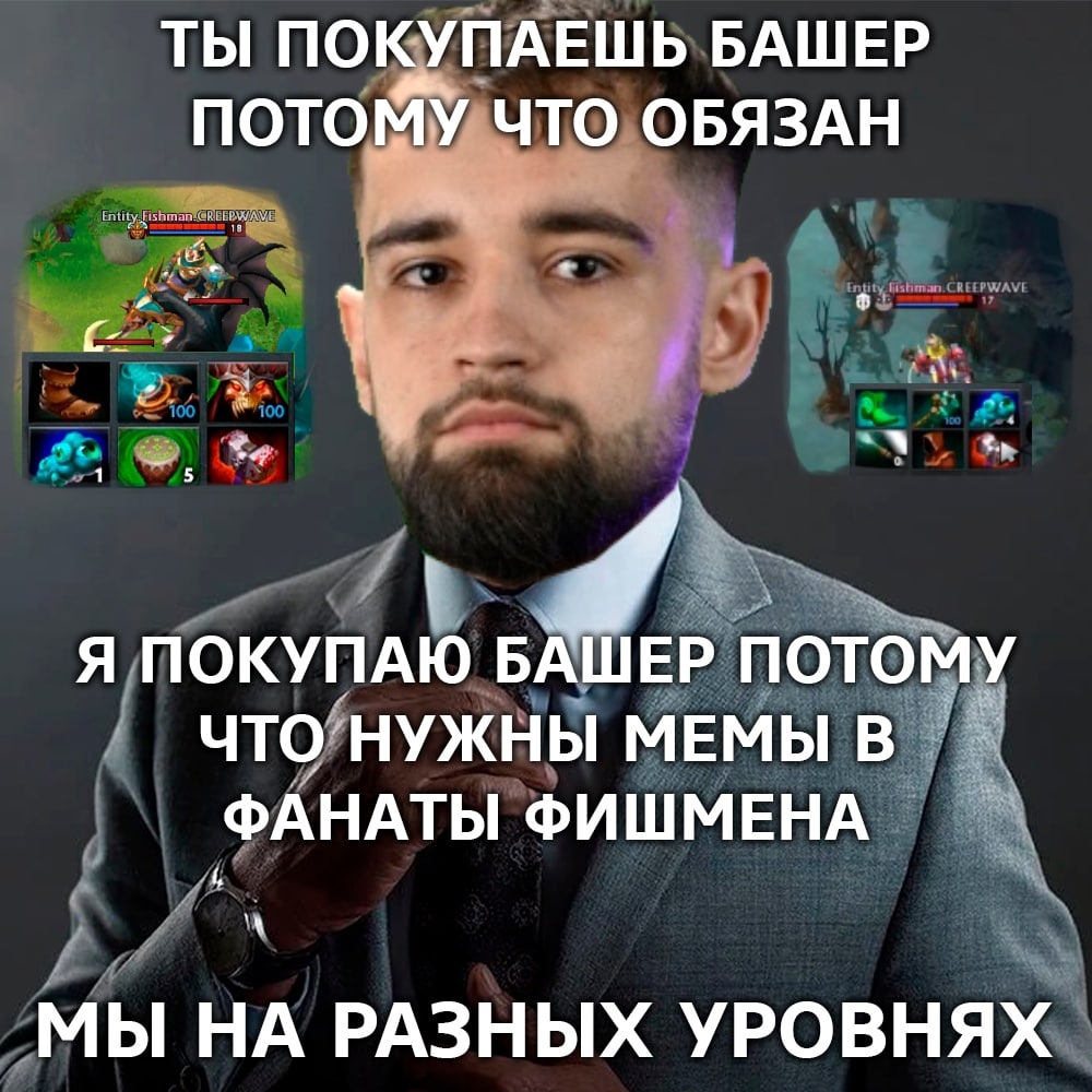 Буду честен, я не считаю, что силен в чем-то, но когда я создал “фанаты фишмена”, когда начал делать мемы, когда начал работать с Entity (спасибо Диме еще миллиард раз за то, что поверил в меня и предложил потеститься), то понял, что готов развиваться для этого дела и буквально обрел смысл в жизни. До этого я мемы не делал, только смотрел их в пабликах, просто интересно было попробовать себя в чем-то новом. И, кстати, почему я выбрал именно Fishman? Ответ прост — хотел продвигать своего земляка и мне сразу же в голову пришел Дима. Он отличный игрок, которого все знали на тот момент только по тому самому мему “Крип, крипочек”. Я хотел, чтобы люди посмотрели на него с другой стороны, чтобы он открылся им.