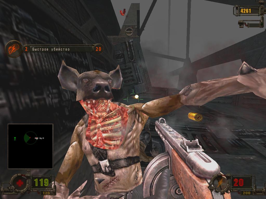 В игре, так же как и в “You Are Empty”, довольно интересно реализована физика. Например, вы можете до кости отстрелить мясо с ног противника, что выглядит довольно впечатляюще, хоть и оставляет некоторые вопросы. В этом плане больше реализма можно увидеть в немецкой версии игры. В ней фича с отстрелом мяса с конечностей противников-людей была убрана в угоду цензуре. Но в свое время именно за эту фишку игру хвалили, а в русской локализации одного из персонажей озвучивает еще молодой Дмитрий “Гоблин” Пучков, что делает обстановку еще комичнее.