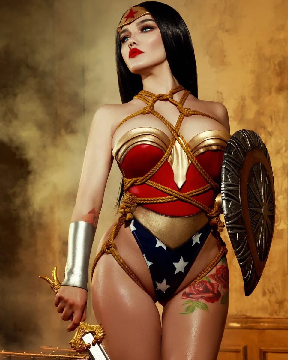 Чудо-женщина — один из первых секс-символов в истории человечества. Появившаяся на страницах комиксов в начале 20 века, героиня очень быстро собрала вокруг себя фанбазу, преимущественно из представителей сильного пола. Все благодаря очень откровенной экипировке, которую спустя годы официально окрестят бронелифчиком. Сегодня предлагаем ознакомиться с работами нескольких девушек, что облачились в эту униформу.