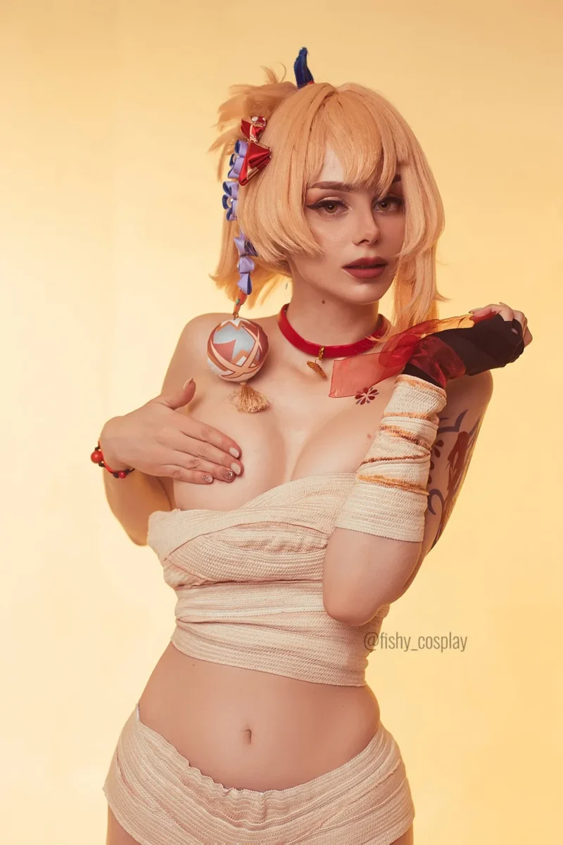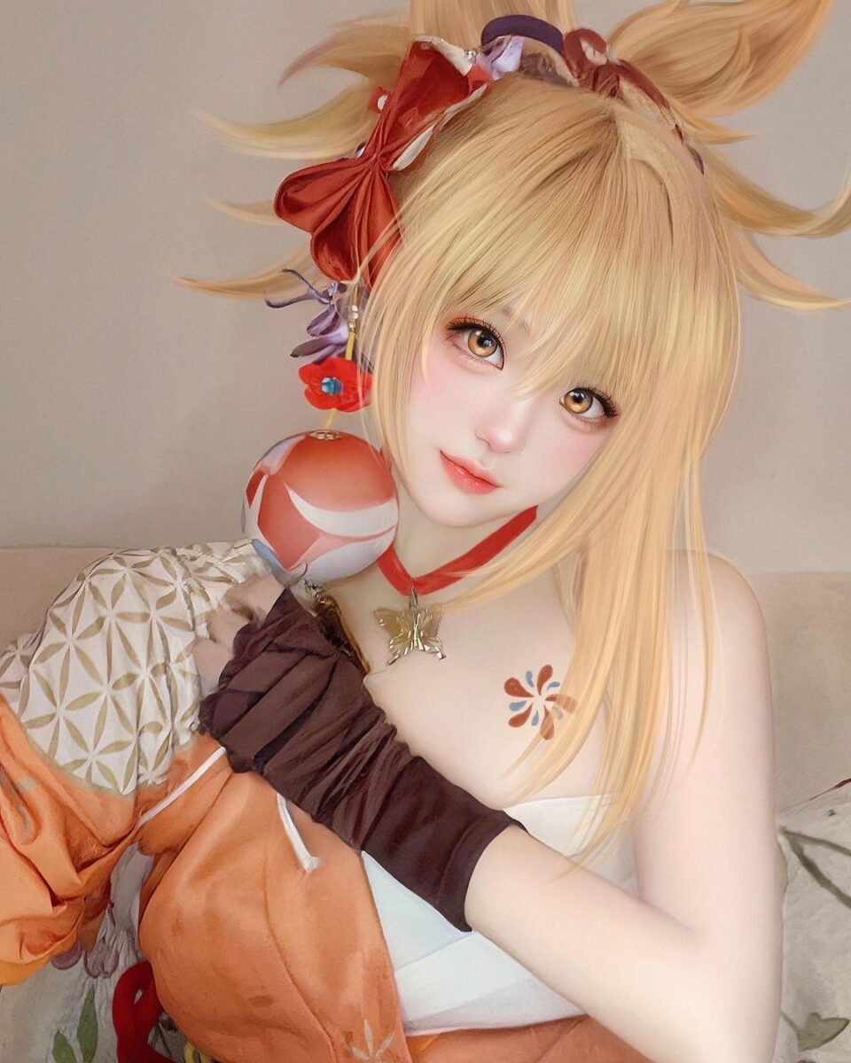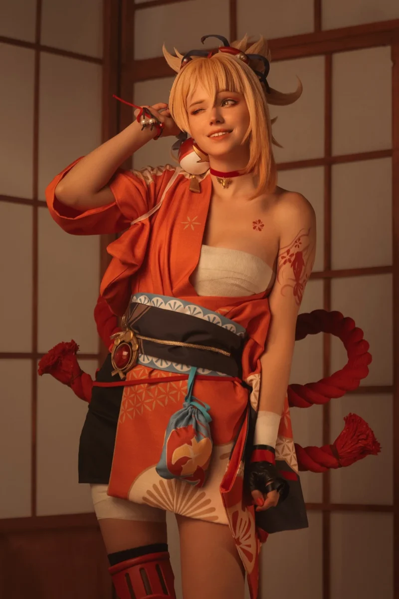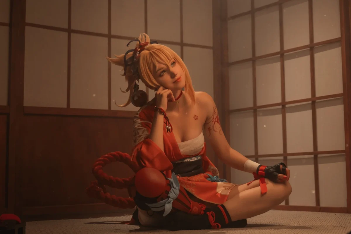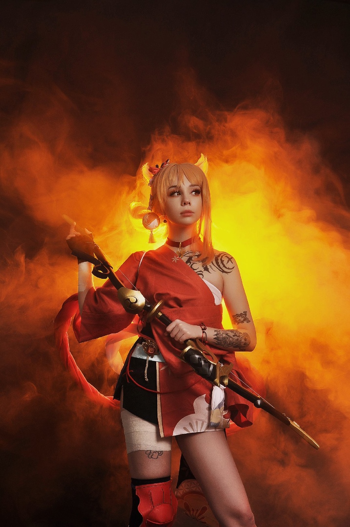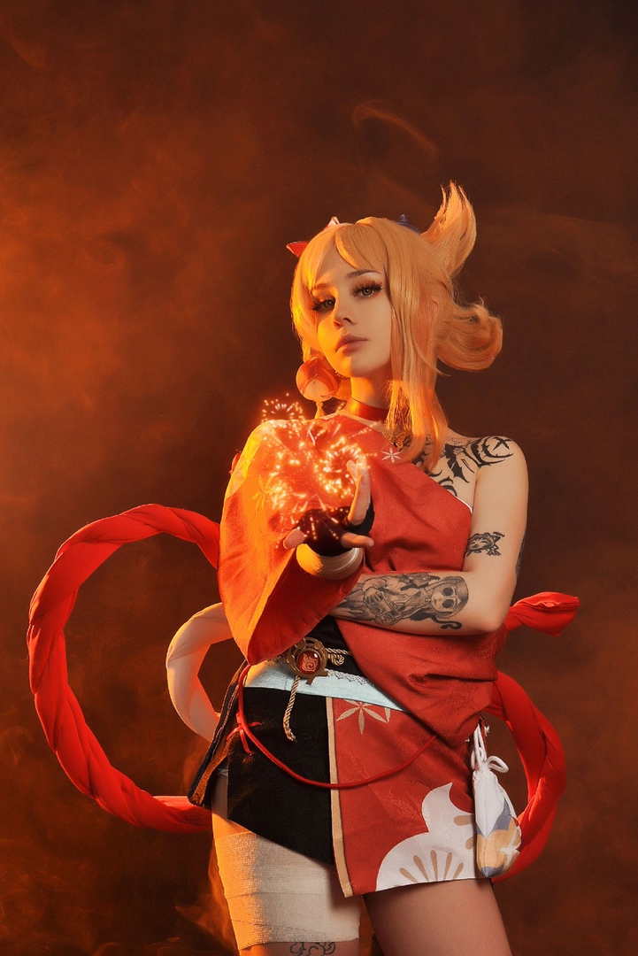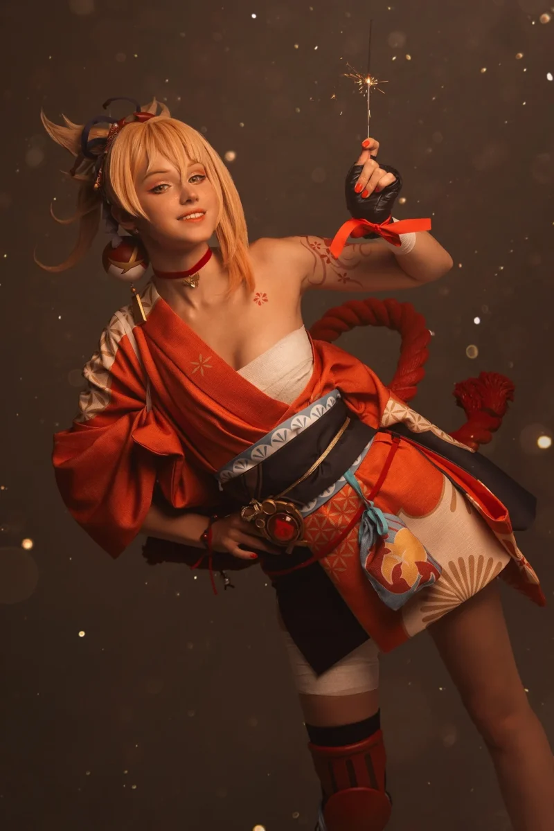 Еимия, или же “Королева праздника лета” — одна из самых ярких представительниц стихии Пиро в Genshin Impact. Фанатка праздничных мероприятий славится своей любовью к фейерверкам и торжествам. Приятный образ вкупе с мощным стрелковым оружием делает из нее восхитительного бойца. К вашему вниманию восхитительный косплей на владелицу “Фейерверков Наганохары“.
