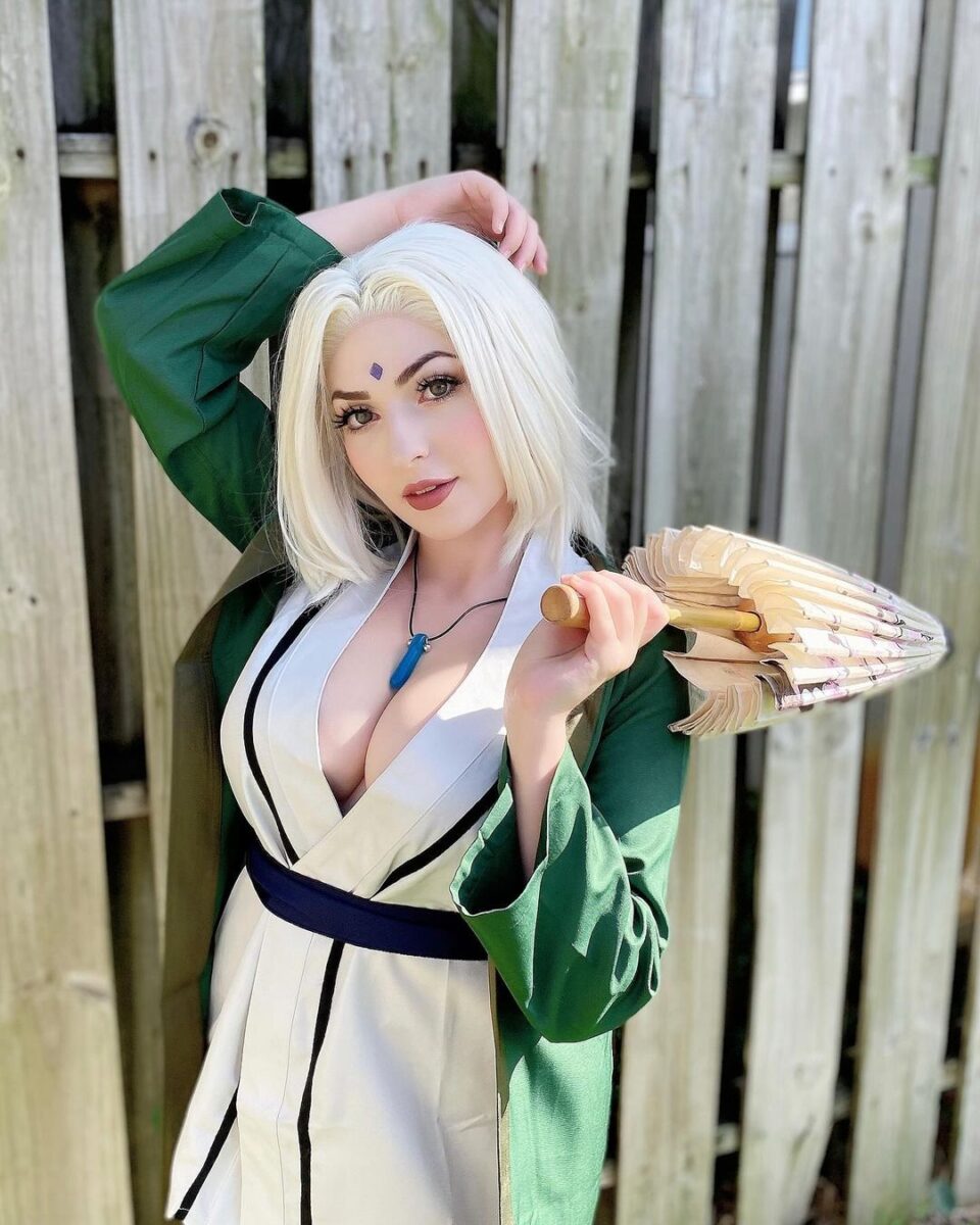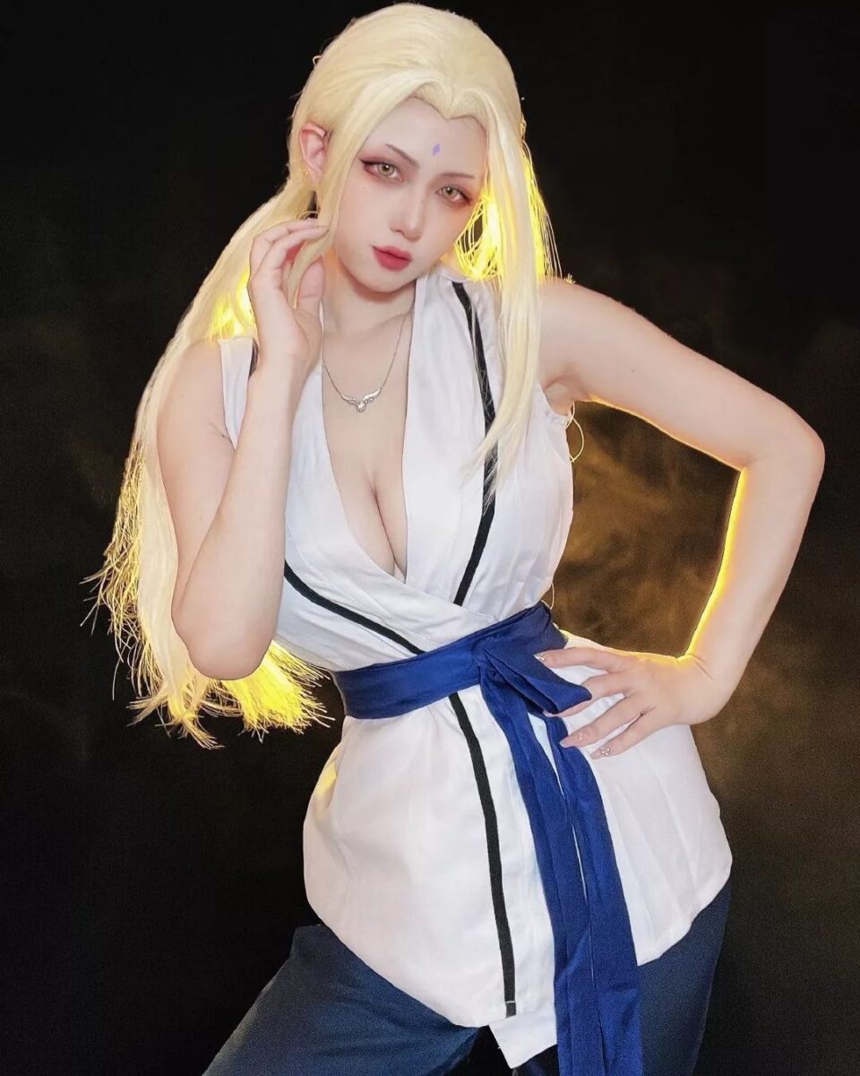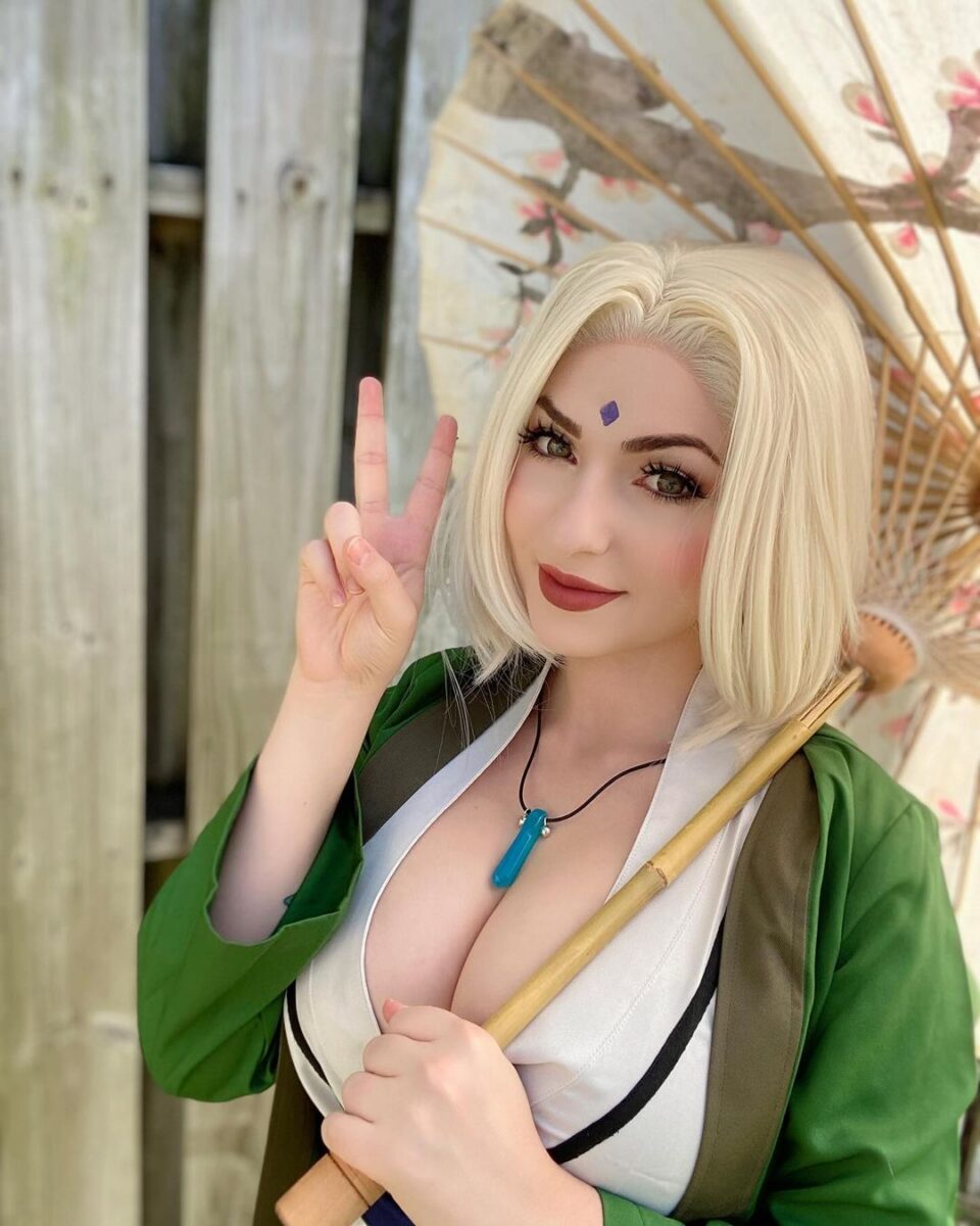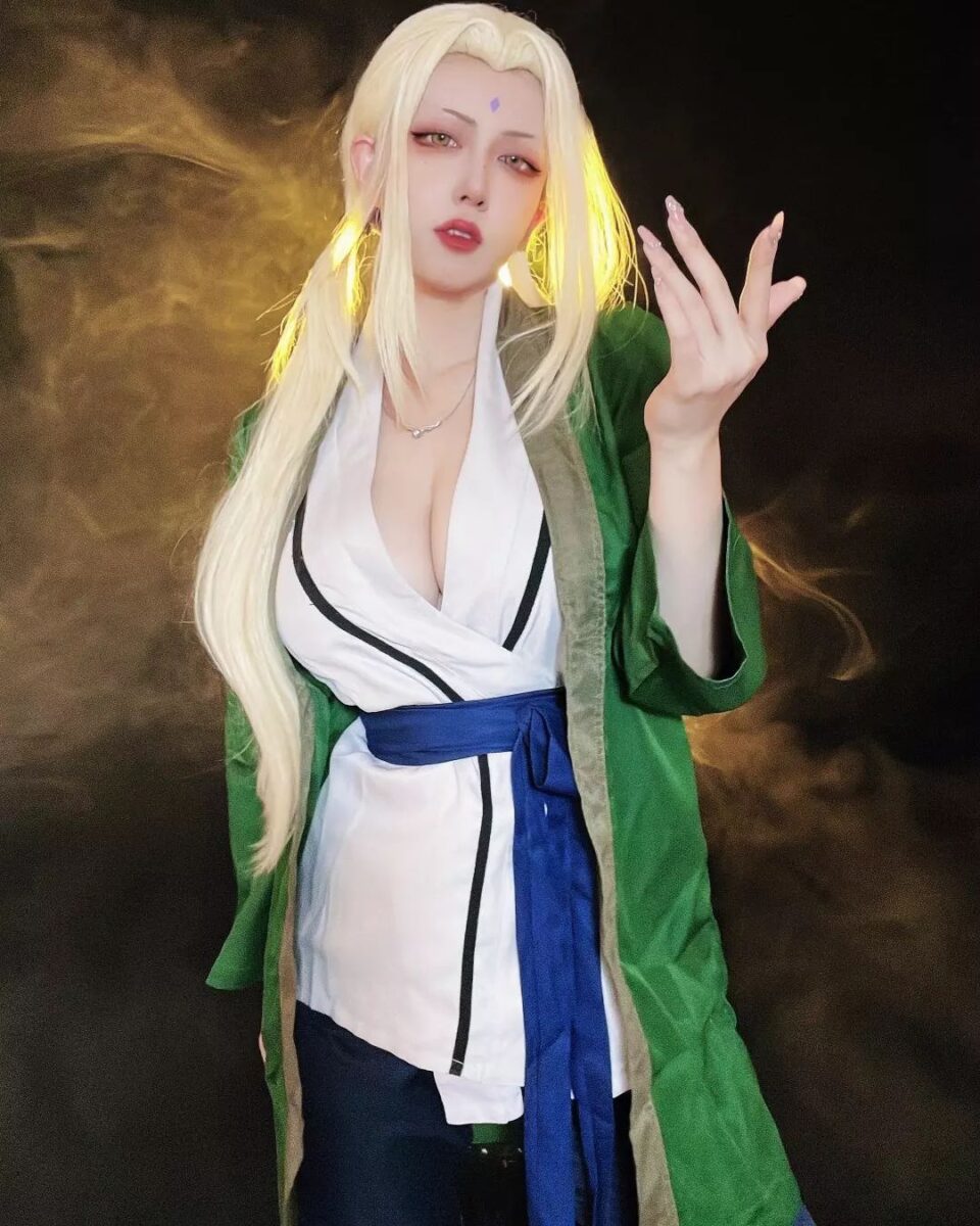 Цунаде — единственная женщина из аниме Наруто, которая стала Хокаге, правителем деревни Скрытого листа. Но многие ее характеристики не очень вяжутся с образом ответственного лидера. Цунаде обожает алкоголь и азартные игры, в которых она всегда проигрывает, за что и заслужила прозвище “Легендарная неудачница”. И, конечно, она невероятно привлекательна, никто не может устоять перед красотой этой очаровательной бабули, (да-да, не забывайте, что Пятой Хокаге уже за 60, пусть она и выглядит как двадцатилетняя девушка). Такой яркий образ привлек немало любительниц косплея, наслаждайтесь!
