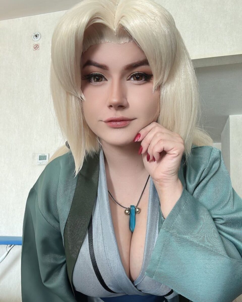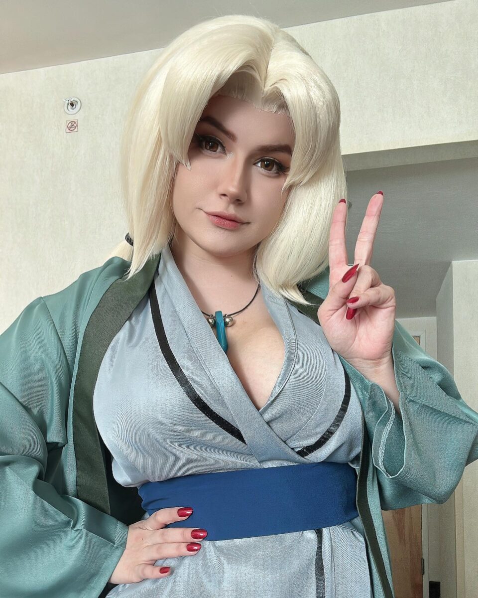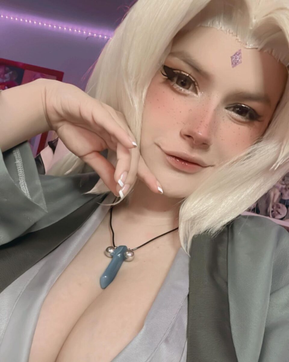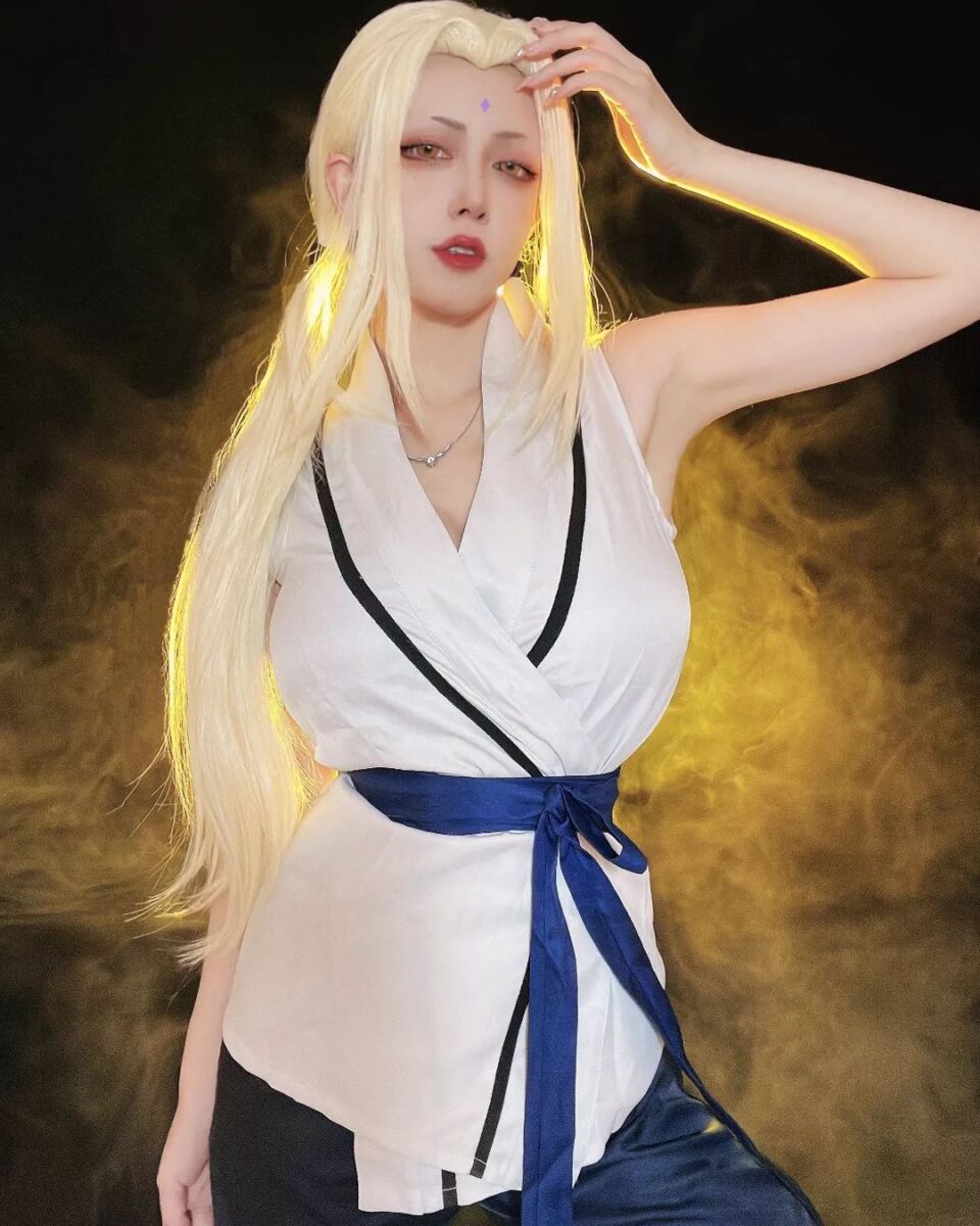 Цунаде — единственная женщина из аниме Наруто, которая стала Хокаге, правителем деревни Скрытого листа. Но многие ее характеристики не очень вяжутся с образом ответственного лидера. Цунаде обожает алкоголь и азартные игры, в которых она всегда проигрывает, за что и заслужила прозвище “Легендарная неудачница”. И, конечно, она невероятно привлекательна, никто не может устоять перед красотой этой очаровательной бабули, (да-да, не забывайте, что Пятой Хокаге уже за 60, пусть она и выглядит как двадцатилетняя девушка). Такой яркий образ привлек немало любительниц косплея, наслаждайтесь!
