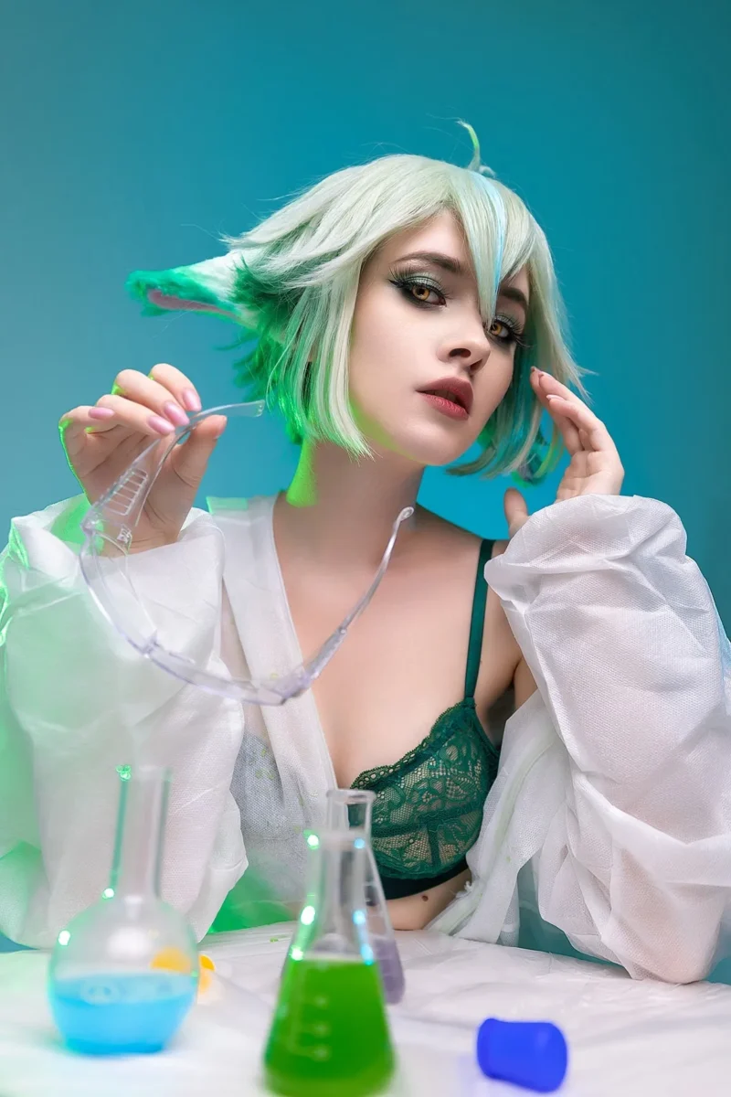 Сахароза — стеснительная молодая ученая из Genshin Impact. Несмотря на неловкость в общении, когда дело доходит до алхимических опытов, она чувствует себя очень уверенно. К счастью, любительницы косплея не менее уверены, когда фотографируются в образе Сахарозы, и мы можем увидеть, какой может быть юное светило мондштадтской науки, когда не смущена.