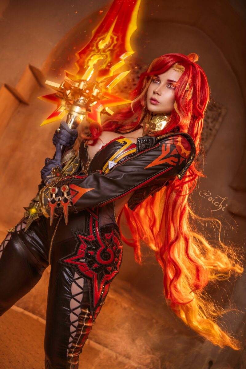 1 января в Genshin Impact появился играбельный пиро Архонт — Мавуика. Разработчики постарались сделать ее воплощением слова “круто”: ни одного изъяна, черный костюм, крутые очки, байк и способность победить каждого противника на своем пути сделали ее кумиром для всех любителей женщин-воительниц. Не упустили этот образ и те, кто занимается косплеем. Всего за неделю под хештегом с ее именем появилось множество моделей, сегодня посмотрим на пятерку самых горячих.