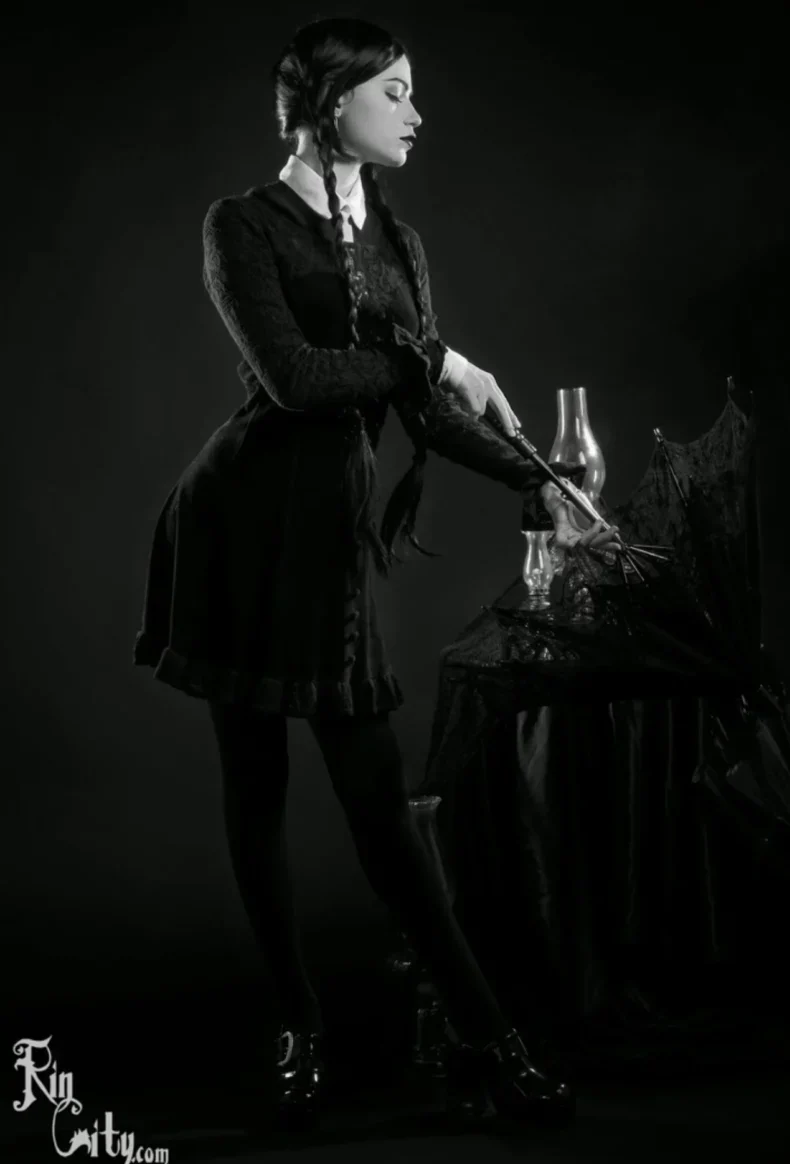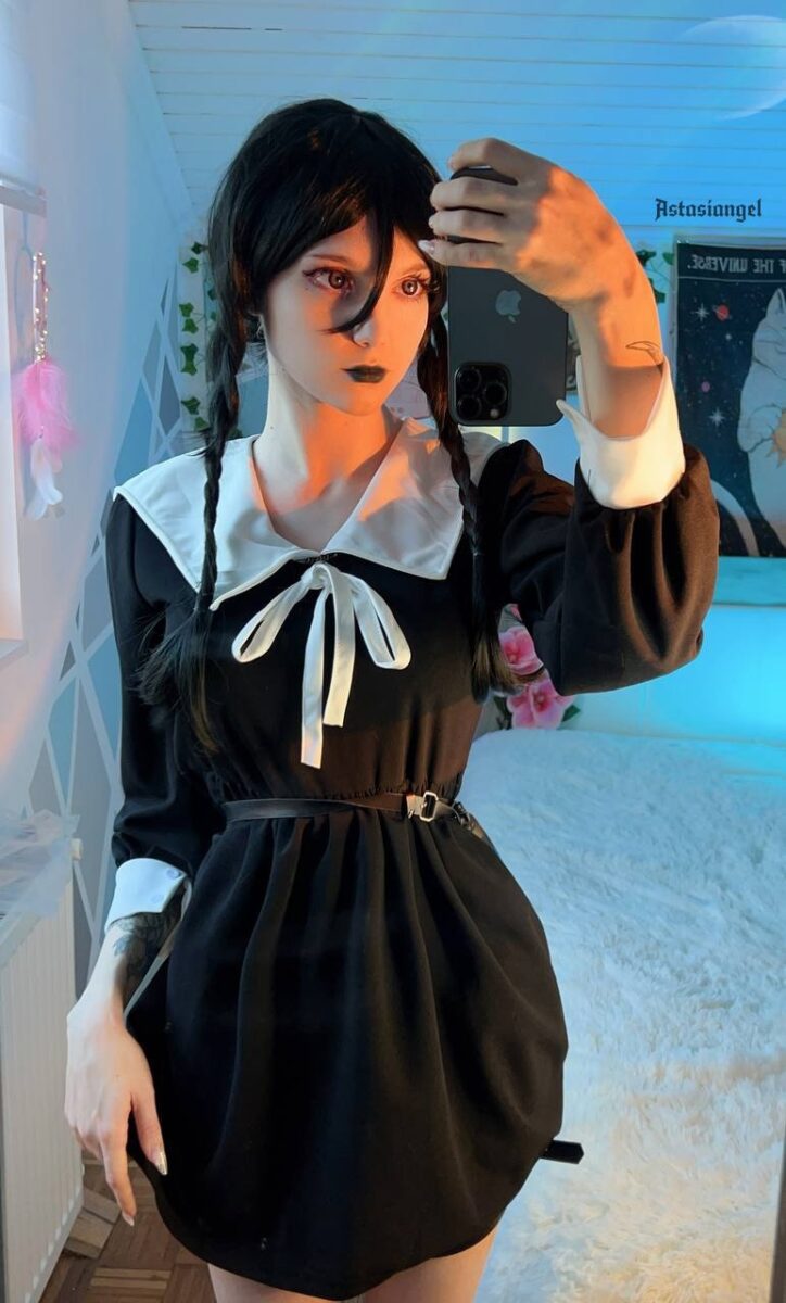 Косплеи на Венсдей – популярное направление среди фанаток мрачной эстетики. Wednesday Addams настолько фактурный персонаж, что не может не вдохновлять моделей на создание атмосферных фотосетов. Их горячие косплеи на Уэнздэй привлекают внимание не только точной передачей характера героини, но и привлекательностью самих моделей.