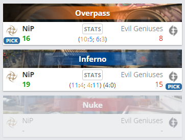 В матче нижней сетки группы “А” регулярного сезона BLAST Premier: Fall 2020 NiP оказались сильнее EG и завершили матч со счетом 2:0 в свою пользу. EG покинули турнир, а NiP встретятся с NaVi 28 октября в 18.30 за право продолжать участие на турнире.