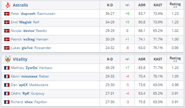 Team Vitality оказалась сильнее Astralis в матче за выход в гранд-финал DreamHack Open Fall 2020 со счетом 2:1. Проигравшие продолжат выступление в нижней сетке турнира, их соперник станет известен завтра после встречи Heroic и Ninjas in Pyjamas.