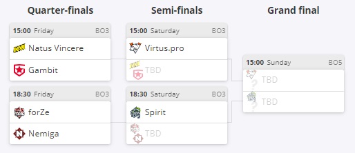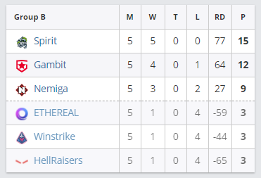 Team Spirit закончила групповую стадию турнира на 1-ом месте в группе “B”. В полуфинале она встретится с победителем матча Nemiga vs. forZe.