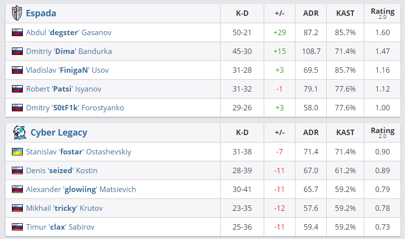 По итогам матча группы “А” в рамках Intel Extreme Masters XV – New York Online: CIS между ESPADA и Cyber Legacy победу одержала команда ESPADA со счетом 2:0.