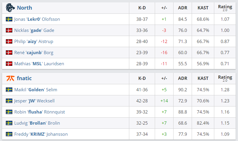 Команда Fnatick обыграла North в четвертьфинале верхней стеки DreamHack Open Fall 2020 по CS:GO. Матч завершился со счетом 2:0 (16:9 на Inferno, 16:10 на Nuke). Таким образом, Fnatick вышла в полуфинал верхней сетки, а North продолжит выступление на чемпионате в нижней сетке плей-офф, где сразится с Heroic.