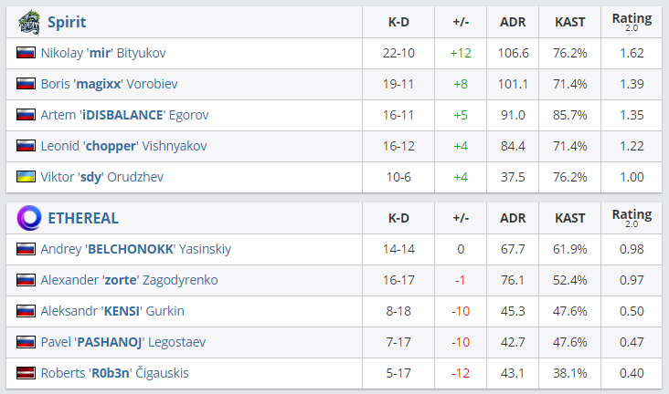 По итогам встречи в группе “B” на IEM New York Online 2020: CIS команда Team Spirit без проблем обыграла Ethereal, завершив встречу со счетом 2:0. У Ethereal не осталось шансов выйти в стадию плей-офф.