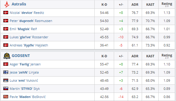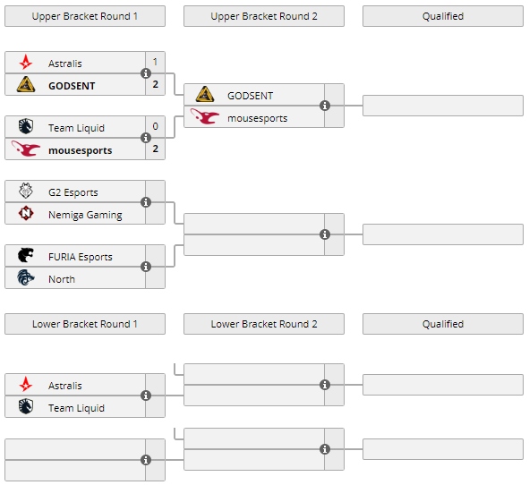 GODSENT обыграла Astralis в матче группы “B” на DreamHack Masters Winter со счетом 2:1. Таким образом GODSENT прошла в следующий раунд верхней сетки, где ее встретит mousesports, матч назначен на 2 декабря в 18:30. Astralis же отправилась в нижнюю сетку к Team Liquid, они сыграют 2 декабря в 15:00.