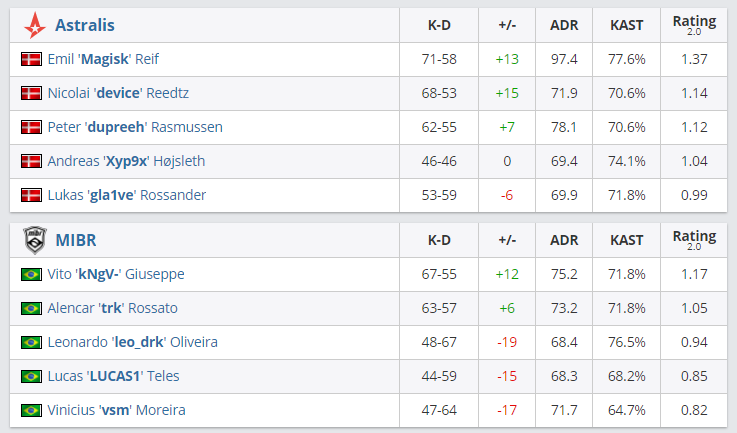 В матче группы “C” BLAST Premier Fall Series 2020 датчане из Astralis обыграли бразильцев из MIBR со счетом 2:1.