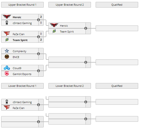 Сегодня в 22:00 в групповом этапе DreamHack Masters Winter 2020 сыграют сразу две пары: Сomplexity и ENCE, Сloud9 и Gambit. Поболеть за коллективы можно здесь и здесь.
