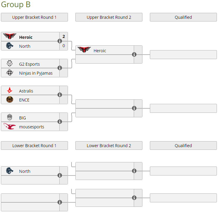 В рамках первого раунда верхней сетки группы “B” Intel Extreme Masters XV – Beijing Online: Europe состоится матч между G2 Esports и Ninjas in Pyjamas.