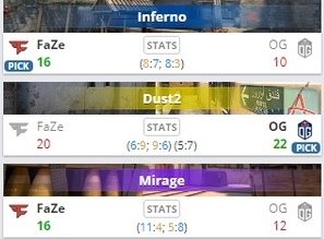 Коллективы боролись на картах Inferno, Dust2 и Mirage. Первую прошли со счетом 16-10, вторую – 20-22, третью – 16-12.