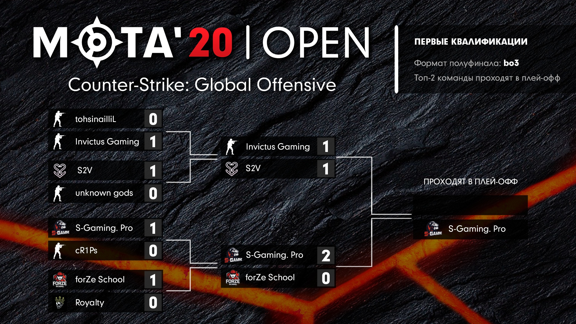Первый участник плей-офф определился – им стала команда S-Gaming.Pro, в составе: