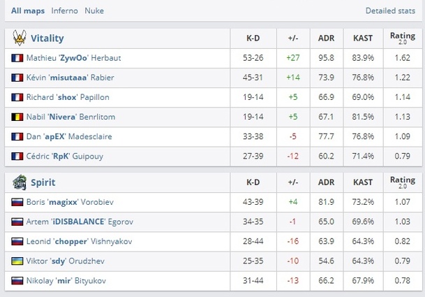 Команды боролись на картах Inferno и Nuke. Итог 16-11 и 16-13 соответственно.