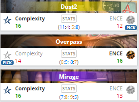 Complexity победила ENCE в групповом этапе DreamHack Masters Winter со счетом 2:1. Complexity прошла во второй раунд верхней сетки, где встретится с Gambit 1 декабря в 22:00. ENCE же в нижней сразится с Cloud9 за выживание 1 декабря в 18:30.