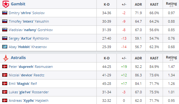 Astralis одержала победу над Gambit Esports в плей-офф DreamHack Masters Winter со счетом 2:0. Следующим оппонентом в полуфинале станет Furia, матч назначен на 5 декабря в 18:30.