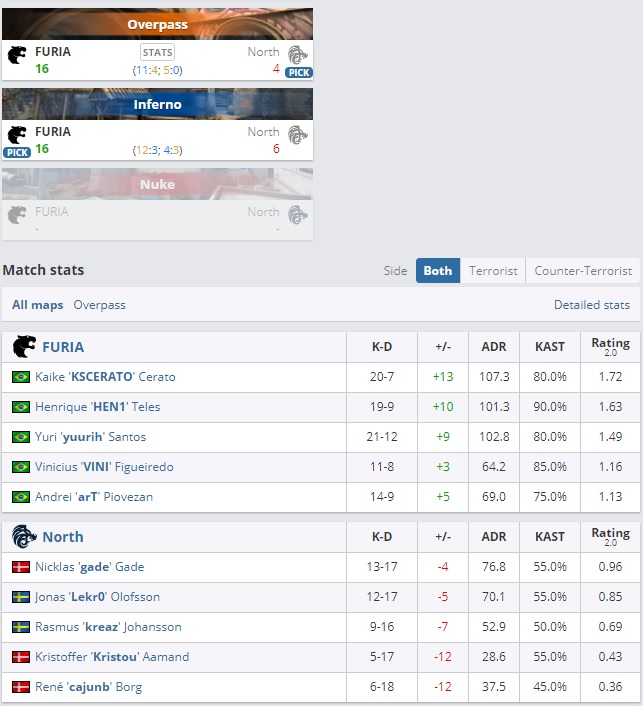 Furia не оставили шансов North в первом матче группового раунда DreamHack Masters Winter. Матч завершился со счётом 2:0. Бразильцы отдали суммарно 10 раундов за две карты и встретятся в следующем раунде с победителем пары G2-Nemiga.