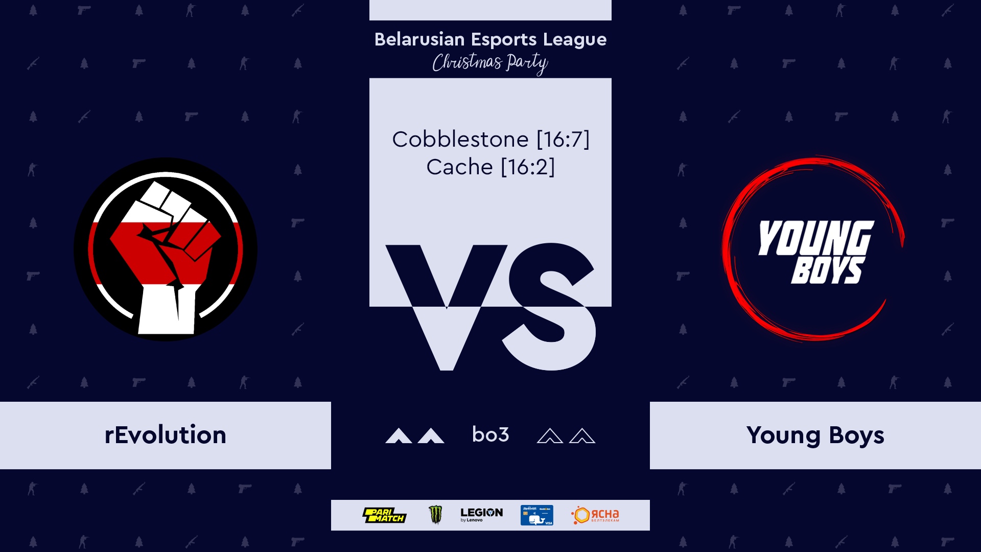 Команда rEvolution уверенно обыграла коллектив Young Boys и вышла в финал турнира Christmas Party. Счет — 2:0. Второй участник решающего матча станет известен сегодня, когда сыграют TRVPREMESLO и AWT.