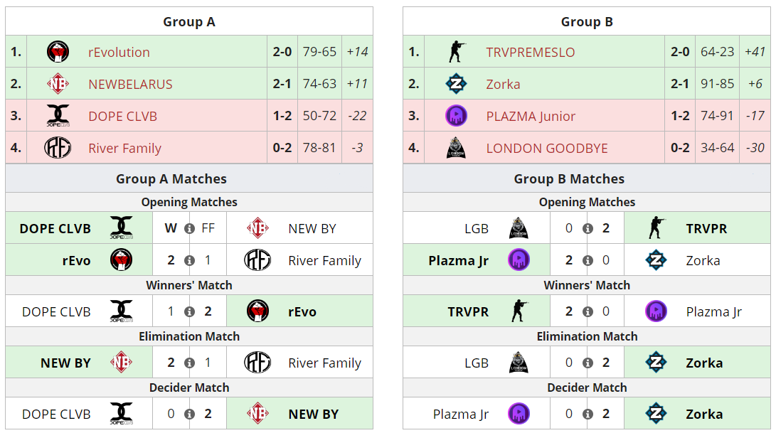 Итоги групповой стадии: