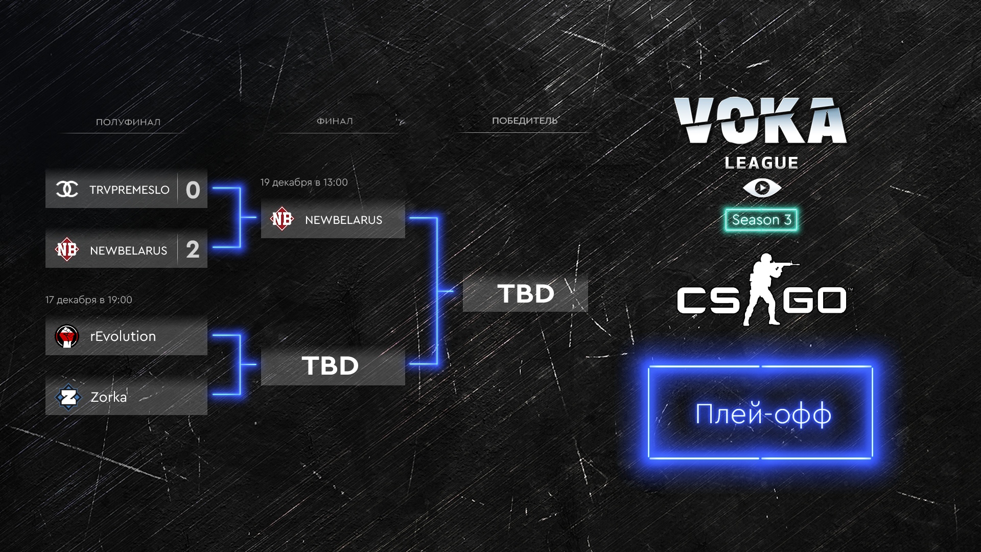 VOKA League Season 3 по CS:GO проходит с 8 по 19 декабря. Призовой фонд — 7 000 рублей.