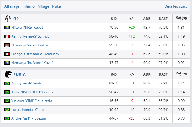 Команда G2 Esports оказалась сильнее FURIA Esports в четвертьфинале BLAST Premier: Global Final. Счет в матче — 2:1. В полуфинале победители встретятся с Astralis. Матч пройдет 21 января. Бразильский коллектив ждет игра с EG в нижней сетке 20 января.