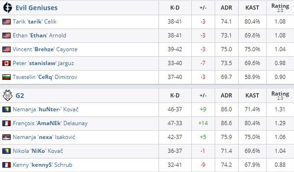 В матче второй группы BLAST Premier: Spring Groups 2021 команда G2 победила Evil Geniuses со счетом 2:0. “Злые гении” отправились в нижнюю сетку, где сыграют на выбывание с Vitality.