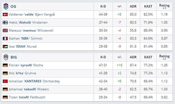BIG прошел в полуфинал квартета, где его уже ждет Ninjas in Pyjamas. OG встретится в матче нижней сетки с Astralis.