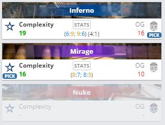 В матче группы “А” ESL Pro League Season 13 Complexity со счетом 2:0 обыграла OG. Победа позволила команде взобраться на вершину турнирной таблицы. На счету команды две виктории в двух встречах.