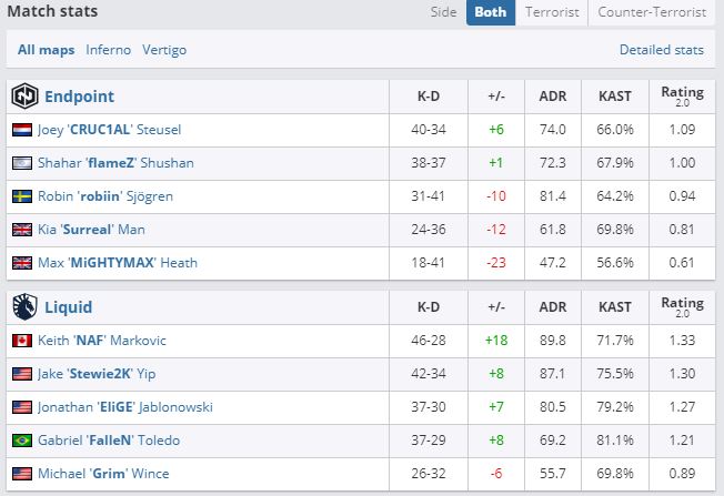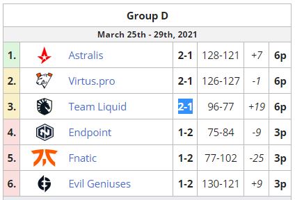 Liquid обыграла Endpoint со счетом 2:0 в матче группы “D” ESL Pro League Season 13. Американский коллектив благодаря этому успеху сравнялся в турнирной таблице с лидерами, VP и Astralis. Теперь у трех этих команд по две победы и одному поражению.
