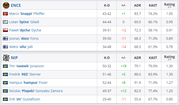 В матче группы “B” ESL Pro League Season 13 команда Ninjas In Pyjamas со счетом 2:1 переиграла коллектив ENCE.