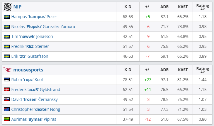В матче группы “B” ESL Pro League Season 13 Ninjas In Pyjamas оказались сильнее mousesports и завершили встречу со счетом 2:1. “Мышки” на этом турнире не смогли выиграть ни одного матча.