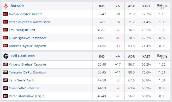 Evil Geniuses обыграли коллектив Astralis в рамках первого тура группы “D” ESL Pro League Season 13 со счетом 2:1.